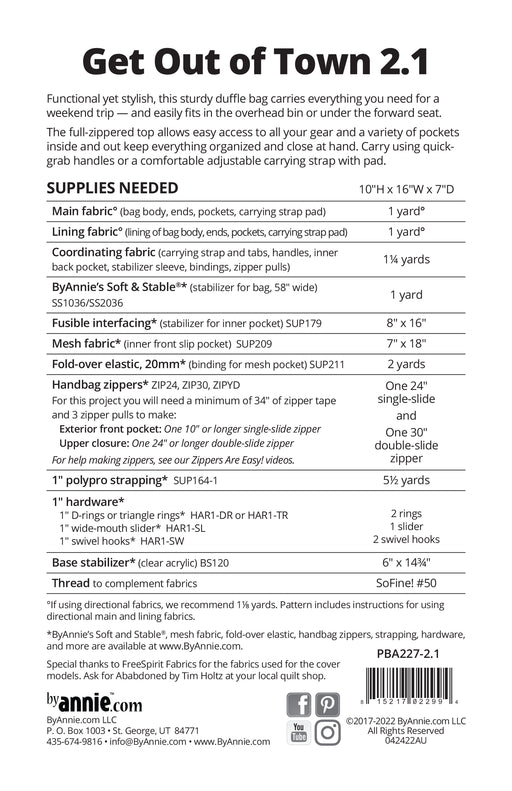 By Annie's patroon voor het maken van een fijne grote reistas. Inclusief een coupon voor de Add-on Video ter waarde van 5 dollar! Grootte van de t...