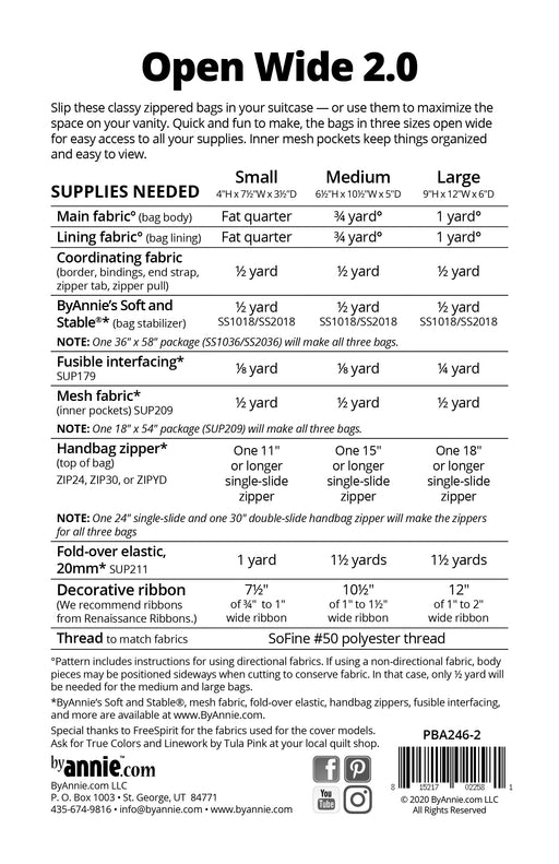 Met het patroon Open Wide 2.0 kun je snel én leuk aan de slag met het maken van rits tasjes in drie formaten die wijd open gaan voor makkelijke toe...