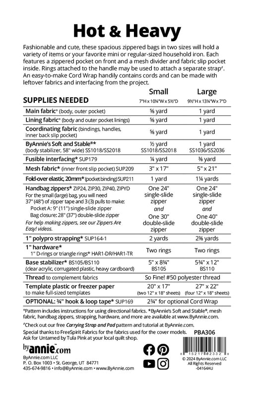 Het Hot & Heavy patroon van ByAnnie is een patroon voor het maken van tassen/strijkijzertas. Het patroon bevat Engelstalige instructies voor tw...